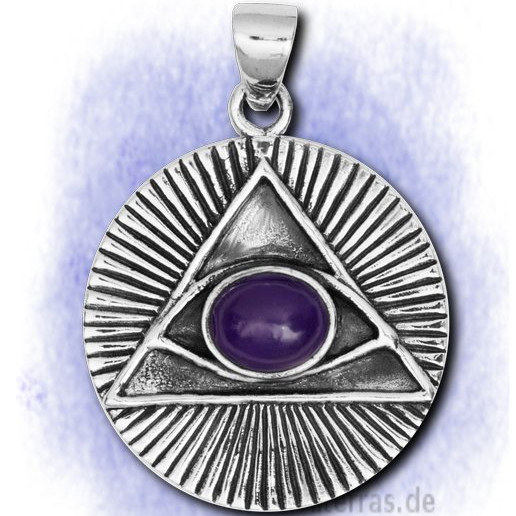 Bekannt wurde das Auge in der Pyramide über den Illuminatenorden dessen Ziel es war die Verbesserung und Vervollkommnung der Welt im Sinne von Freiheit. Aber auch als Zeichen unter dem Namen „Böser Blick“. Das Amulett soll gegen Neid und Verwünschungen anderer Menschen schützen. Auch soll es die negative Energie an den Absender zurücksenden.