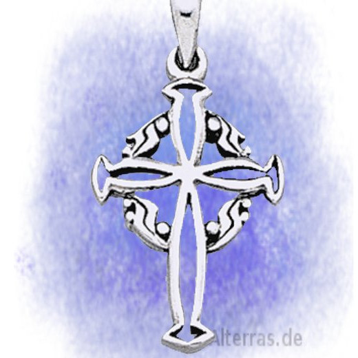 Anhänger „Keltenkreuz“ aus 925-Silber. Keltische Symbole sind sehr aussagekräftige und wirkungsvolle Zeichen.  Rad des Seins, Triskele, Triquetra, keltische Knoten sind einige Beispiele. Schriftliche Überlieferungen gab es bei den Kelten nicht. Deshalb schmückten sie Gräber, Waffen, Schmuck und auch Schüsseln und Tafeln mit bedeutungsvollen Symbolen. Geheimnisvoll und mystisch wirkt diese Symbolik und hat bis heute nichts von ihrer Faszination verloren. Die Symbole auf den Schmuckstücken haben verschiedene Bedeutungen und Wirkungen. Willst Du Deine Träume verwirklichen, suchst Du den Weg der Erkenntnis, fehlen Dir Kraft und Energie oder ist es die ganzheitliche Entwicklung? Finde Dein passendes Schmuckstück.