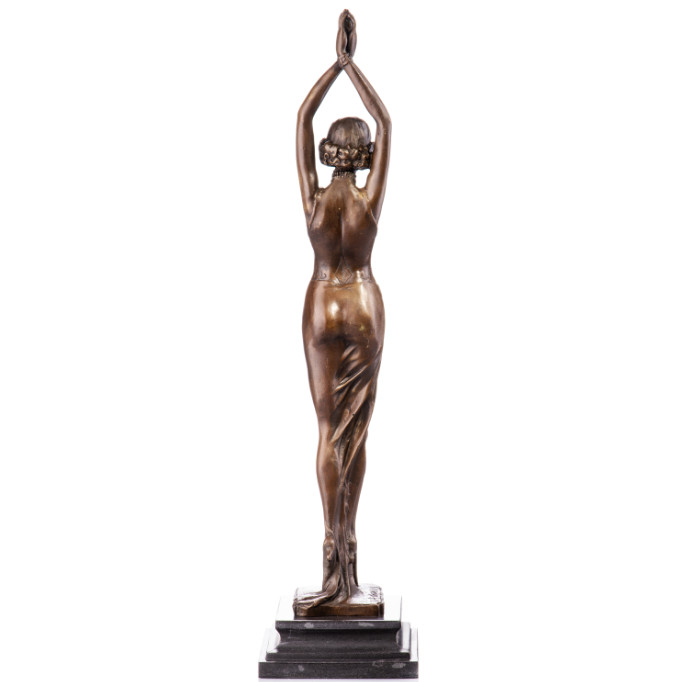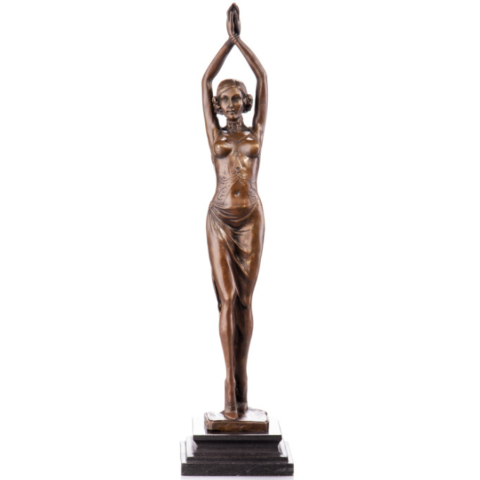 Bronze Figur „Art Deco Tänzerin“ 49cm. Bronzefiguren aus verschiedenen Stilrichtungen und in unterschiedlichen Größen warten darauf, Dein häusliches Ambiente zu verzaubern. Eine Bronzefigur wirkt immer stilvoll und künstlerisch. Ob auf dem Schreibtisch oder in Regal und Vitrine, eine Bronzefigur verschönert ihre Umgebung und zieht die Blicke auf sich. Aber nicht nur in Wohnung und Haus, auch draußen, zum Beispiel im Eingangsbereich, im Garten oder am Teich kann sie ihre Wirkung entfalten. Frostsicherheit, lebenslange Haltbarkeit und edle Erscheinung sind ihre Vorteile.