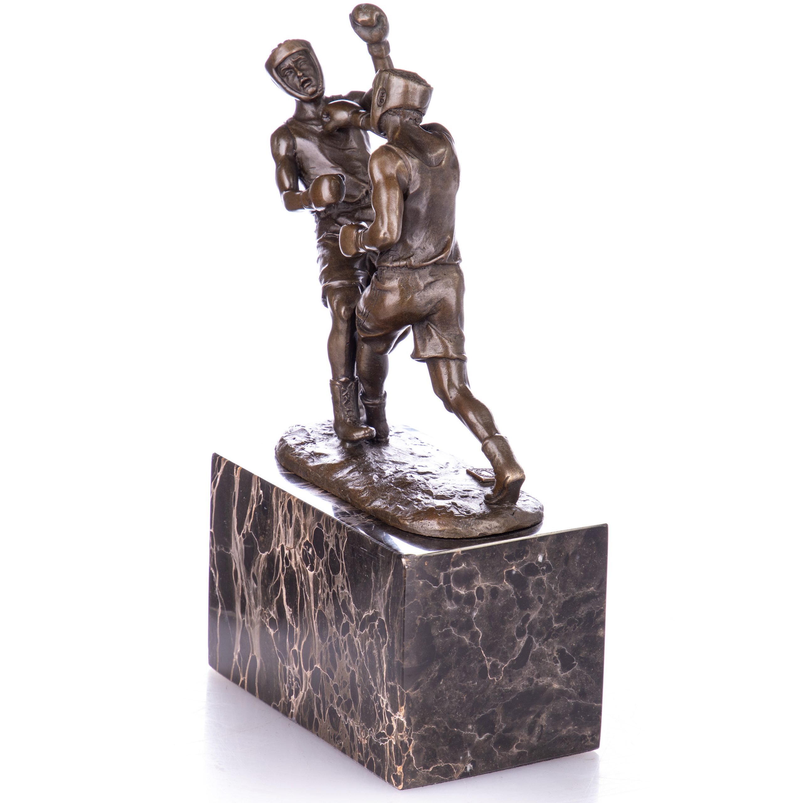 Bronze Figur „Boxer“ 24x14x8cm. Bronzefiguren aus verschiedenen Stilrichtungen und in unterschiedlichen Größen warten darauf, Dein häusliches Ambiente zu verzaubern. Eine Bronzefigur wirkt immer stilvoll und künstlerisch. Ob auf dem Schreibtisch oder in Regal und Vitrine, eine Bronzefigur verschönert ihre Umgebung und zieht die Blicke auf sich. Aber nicht nur in Wohnung und Haus, auch draußen, zum Beispiel im Eingangsbereich, im Garten oder am Teich kann sie ihre Wirkung entfalten. Frostsicherheit, lebenslange Haltbarkeit und edle Erscheinung sind ihre Vorteile.