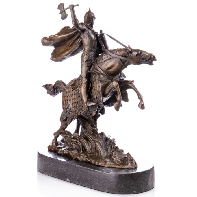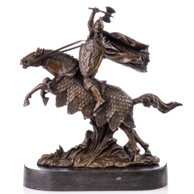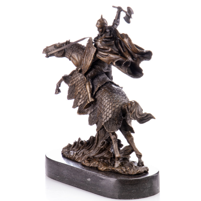 Bronze Figur Helden „Ritter auf Pferd mit Streitaxt“ 27cm