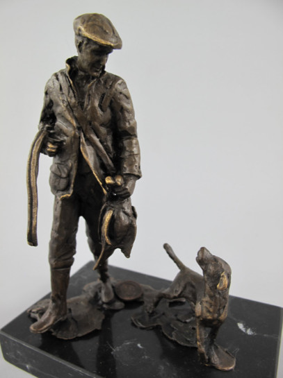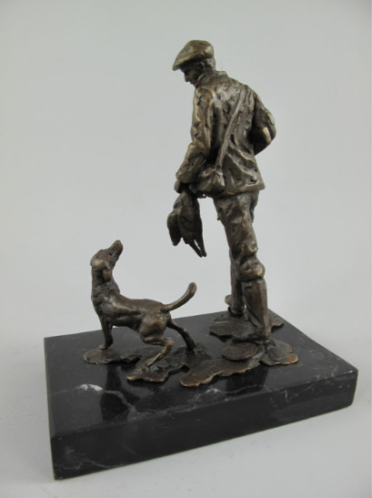 Bronze Figur „Mann – Jäger mit Hund“ 16x12x8cm