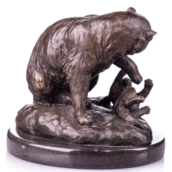 Bronze Figur Tier „Katze mit Jungen“ 16x15x15cm. Bronzefiguren aus verschiedenen Stilrichtungen und in unterschiedlichen Größen warten darauf, Dein häusliches Ambiente zu verzaubern. Eine Bronzefigur wirkt immer stilvoll und künstlerisch. Ob auf dem Schreibtisch oder in Regal und Vitrine, eine Bronzefigur verschönert ihre Umgebung und zieht die Blicke auf sich. Aber nicht nur in Wohnung und Haus, auch draußen, zum Beispiel im Eingangsbereich, im Garten oder am Teich kann sie ihre Wirkung entfalten. Frostsicherheit, lebenslange Haltbarkeit und edle Erscheinung sind ihre Vorteile.