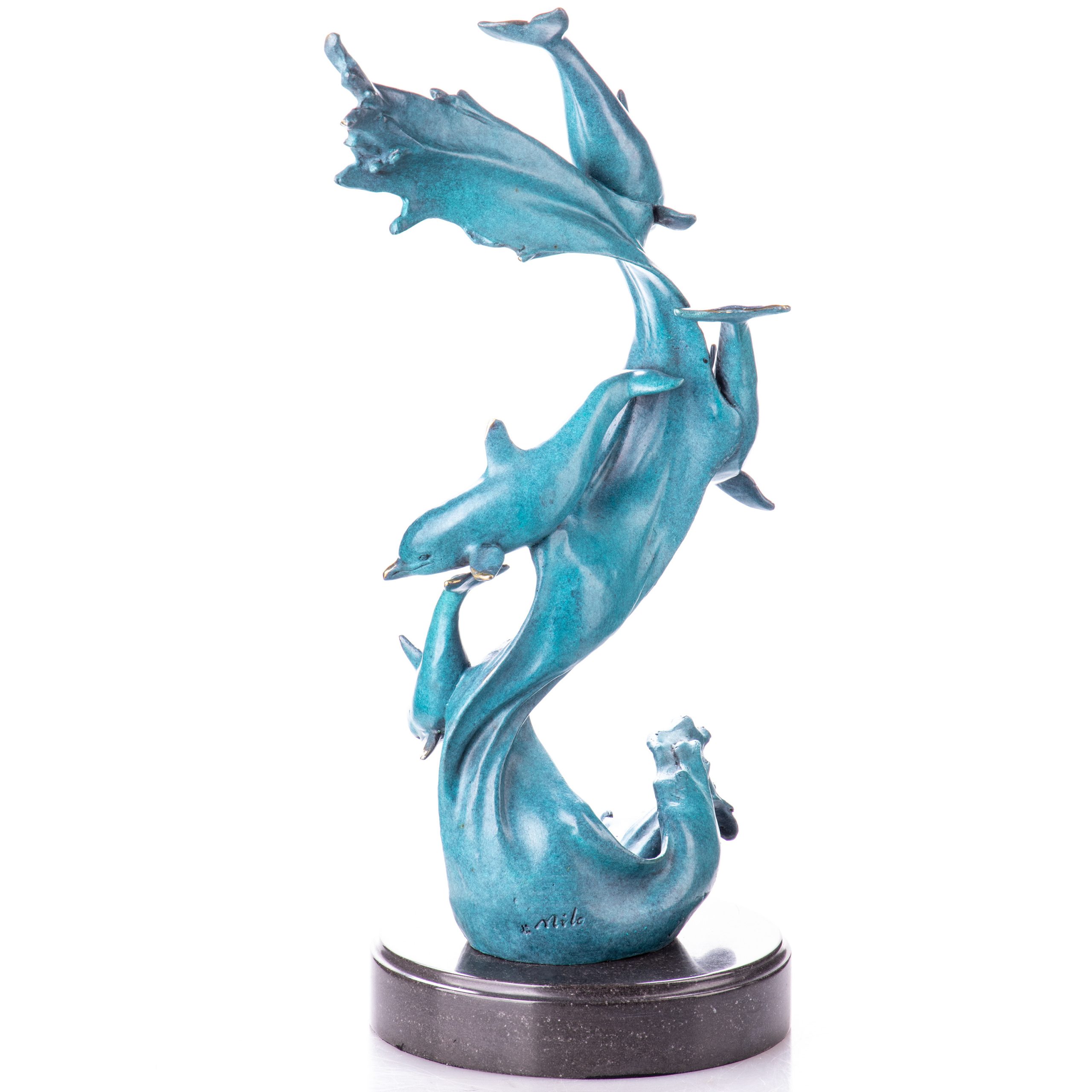 Bronzefigur „Delfine mit grüner Patina“ 47x27x20cm