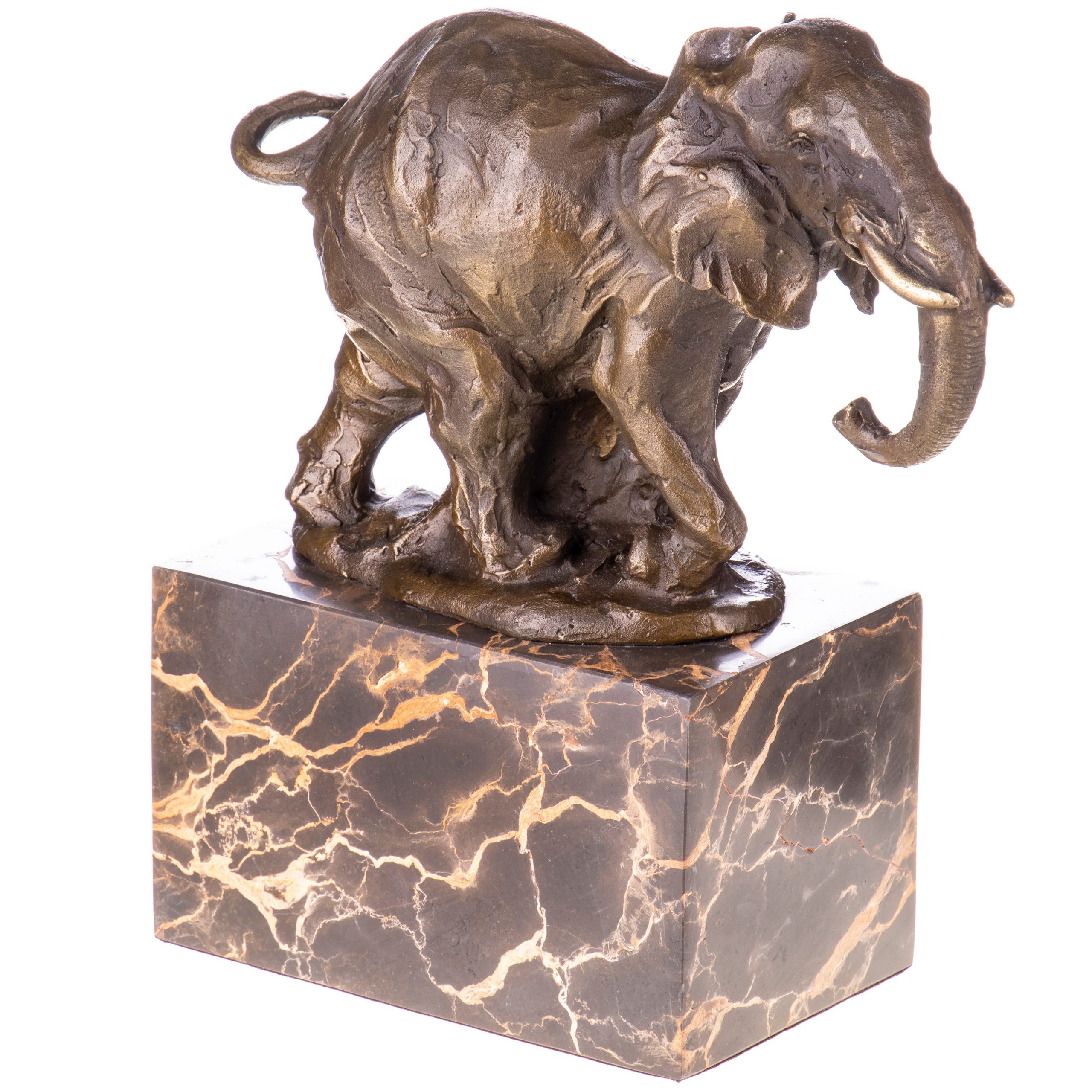 Bronzefigur Elefant 20x18x8cm. Bronzefiguren aus verschiedenen Stilrichtungen und in unterschiedlichen Größen warten darauf, Dein häusliches Ambiente zu verzaubern. Eine Bronzefigur wirkt immer stilvoll und künstlerisch. Ob auf dem Schreibtisch oder in Regal und Vitrine, eine Bronzefigur verschönert ihre Umgebung und zieht die Blicke auf sich. Aber nicht nur in Wohnung und Haus, auch draußen, zum Beispiel im Eingangsbereich, im Garten oder am Teich kann sie ihre Wirkung entfalten. Frostsicherheit, lebenslange Haltbarkeit und edle Erscheinung sind ihre Vorteile.