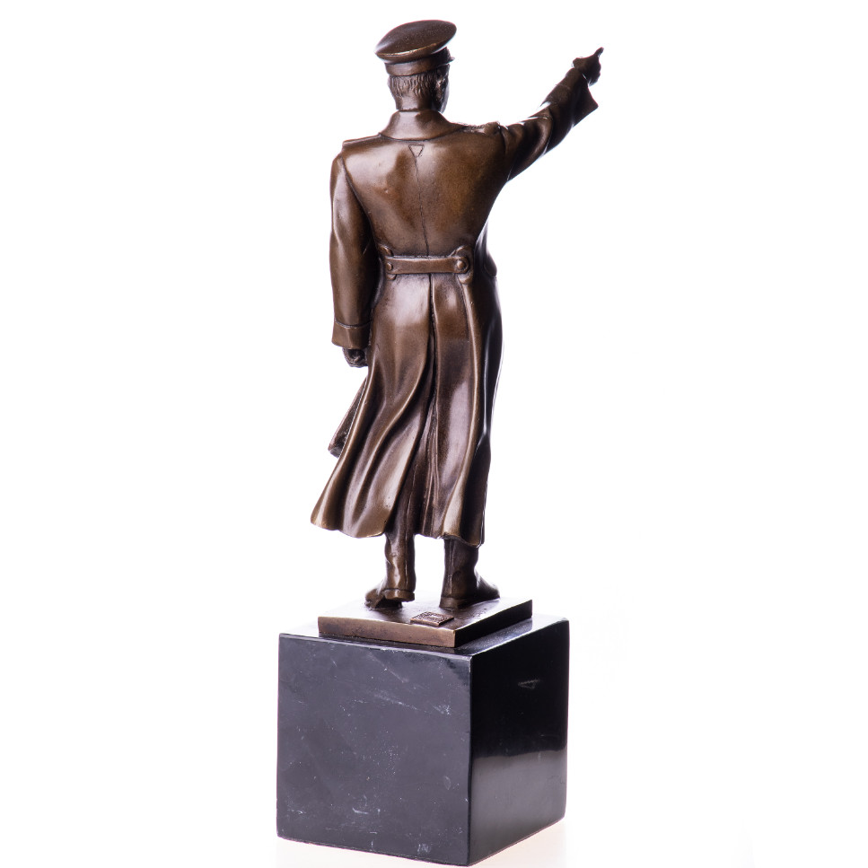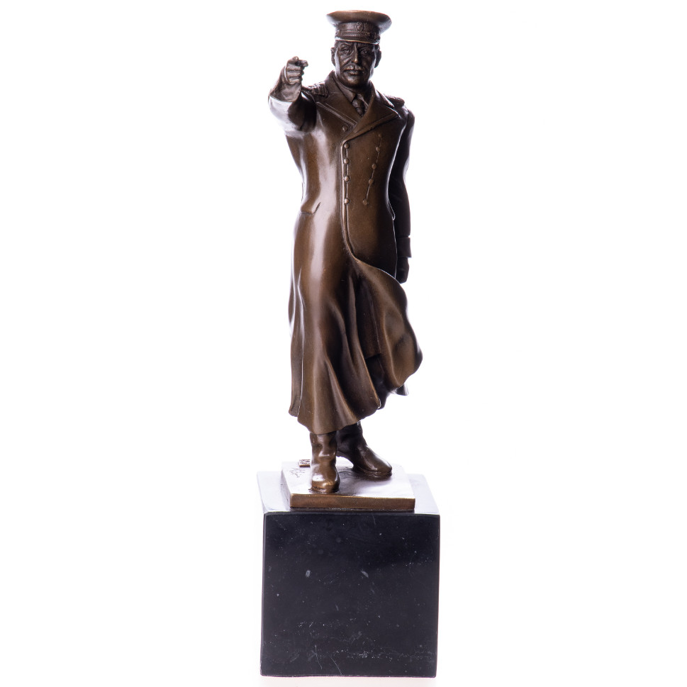 Bronzefigur Politik „Stalin“ 33x13x8cm. Bronzefiguren aus verschiedenen Stilrichtungen und in unterschiedlichen Größen warten darauf, Dein häusliches Ambiente zu verzaubern. Eine Bronzefigur wirkt immer stilvoll und künstlerisch. Ob auf dem Schreibtisch oder in Regal und Vitrine, eine Bronzefigur verschönert ihre Umgebung und zieht die Blicke auf sich. Aber nicht nur in Wohnung und Haus, auch draußen, zum Beispiel im Eingangsbereich, im Garten oder am Teich kann sie ihre Wirkung entfalten. Frostsicherheit, lebenslange Haltbarkeit und edle Erscheinung sind ihre Vorteile.