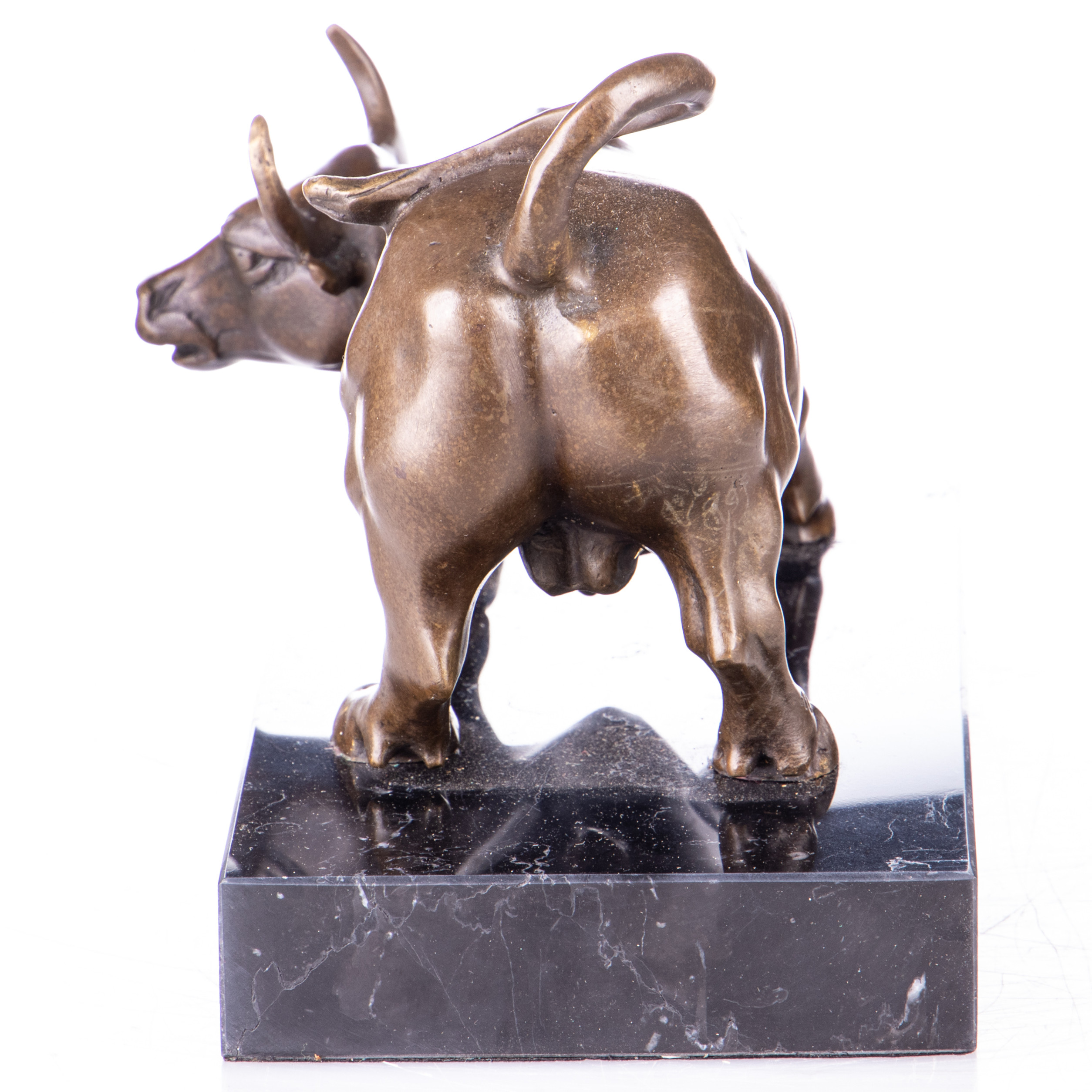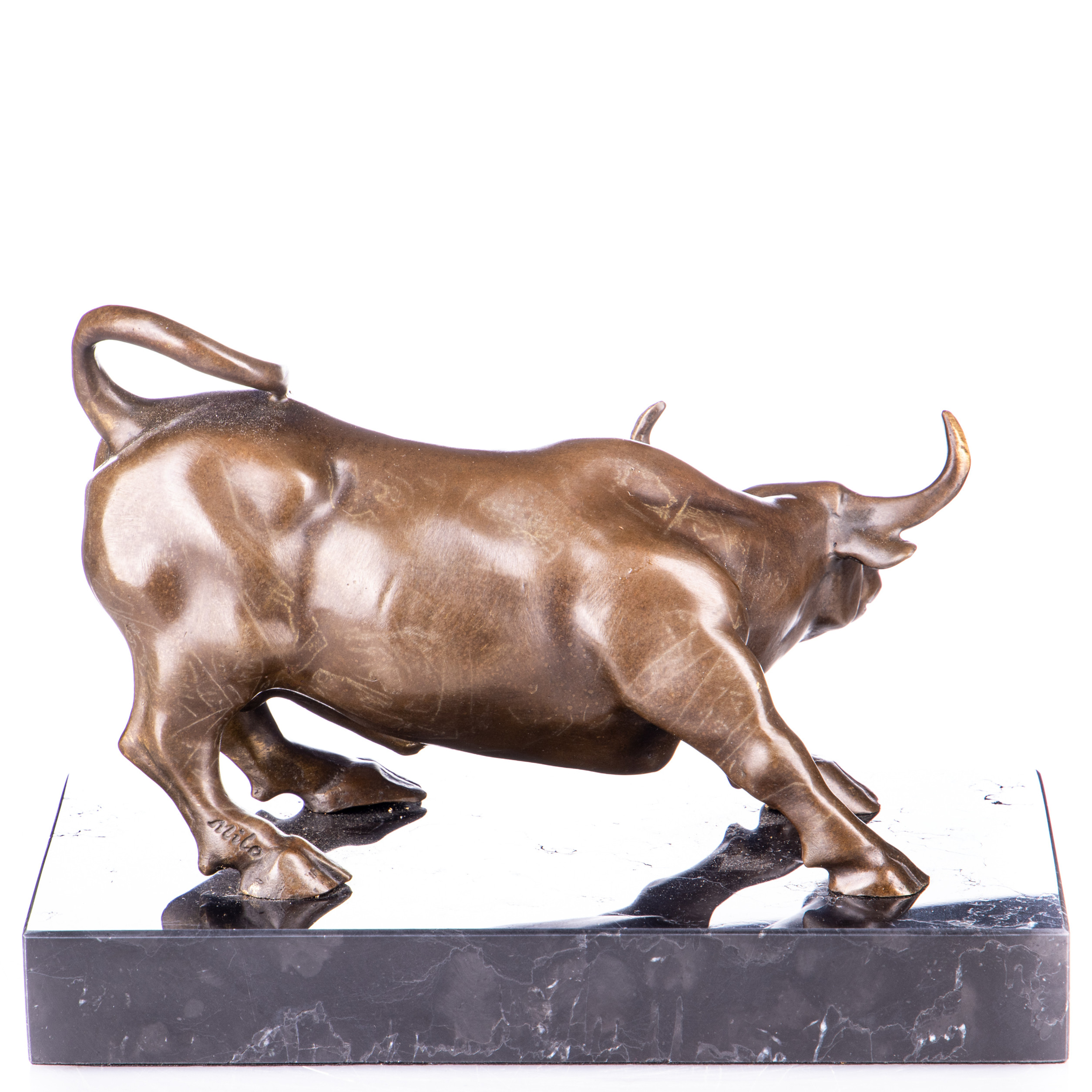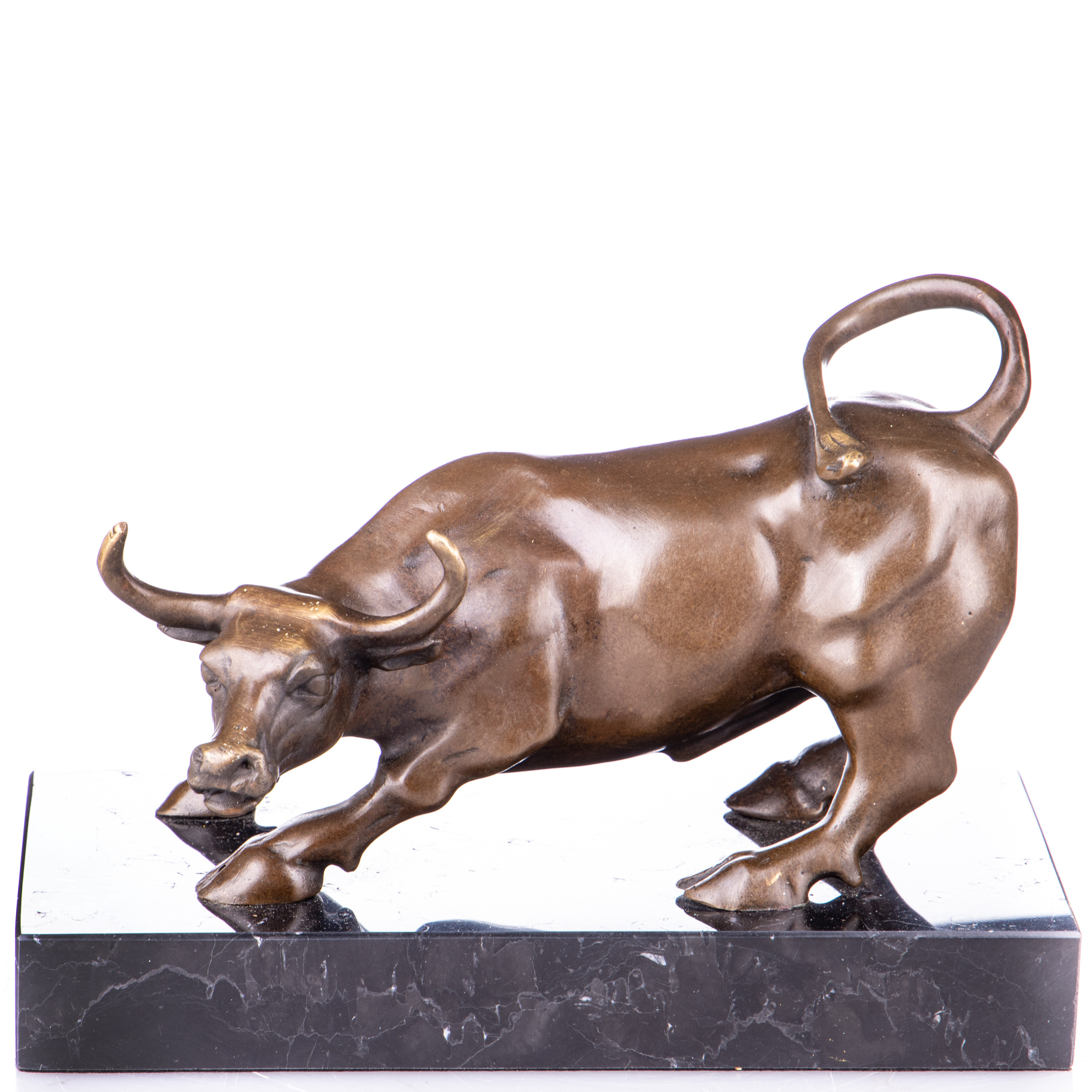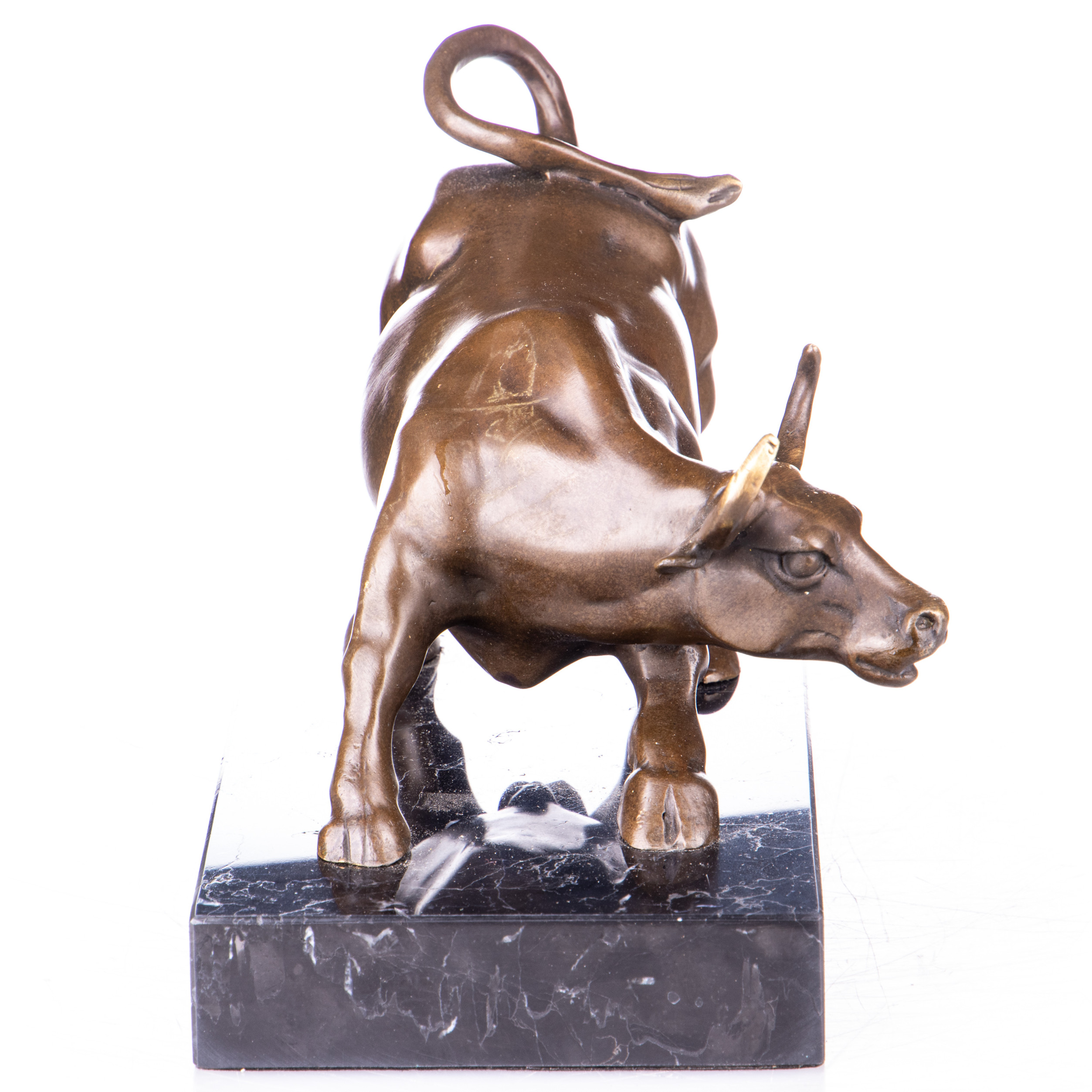Bronzefigur Stier 16x22x14cm. Bronzefiguren aus verschiedenen Stilrichtungen und in unterschiedlichen Größen warten darauf, Dein häusliches Ambiente zu verzaubern. Eine Bronzefigur wirkt immer stilvoll und künstlerisch. Ob auf dem Schreibtisch oder in Regal und Vitrine, eine Bronzefigur verschönert ihre Umgebung und zieht die Blicke auf sich. Aber nicht nur in Wohnung und Haus, auch draußen, zum Beispiel im Eingangsbereich, im Garten oder am Teich kann sie ihre Wirkung entfalten. Frostsicherheit, lebenslange Haltbarkeit und edle Erscheinung sind ihre Vorteile.
