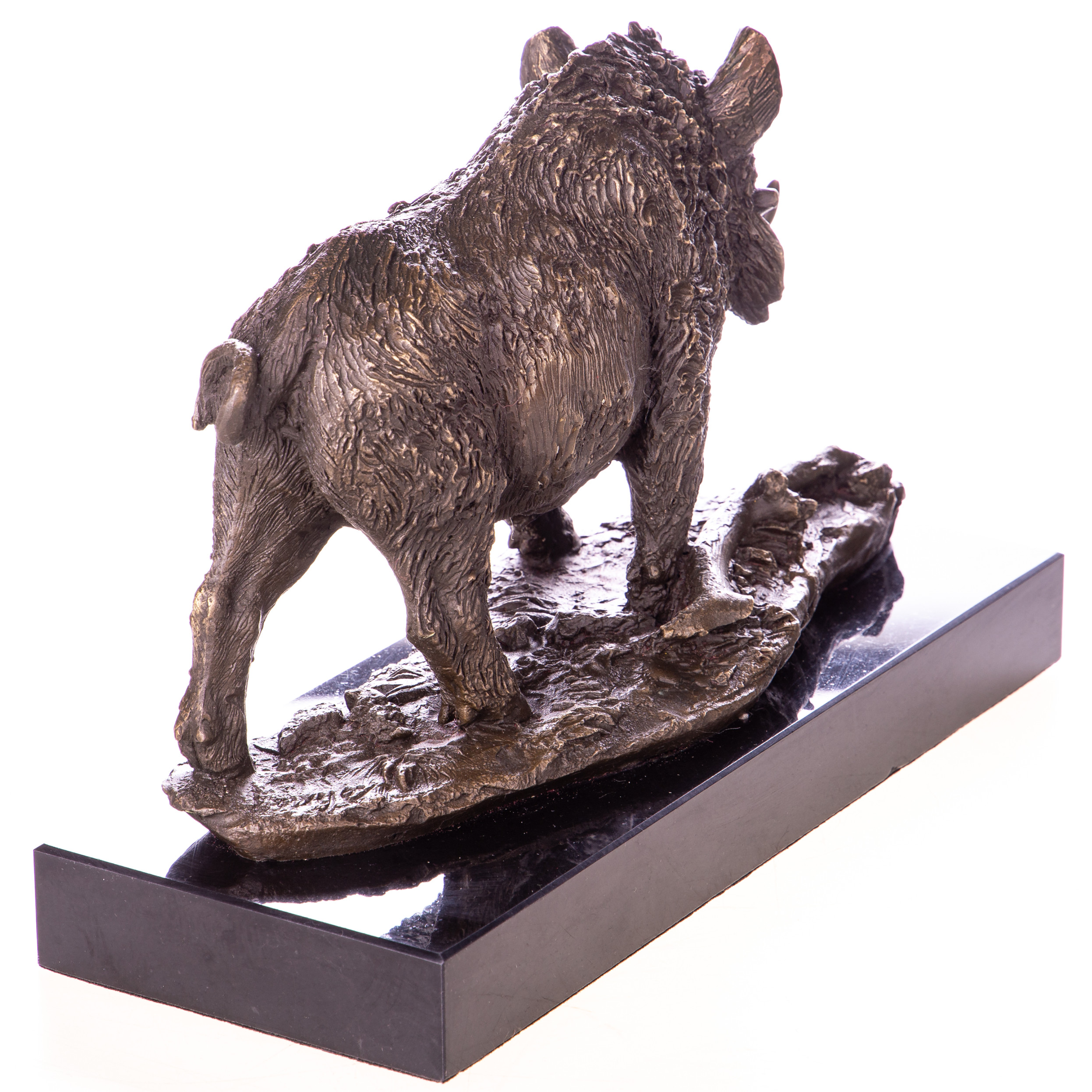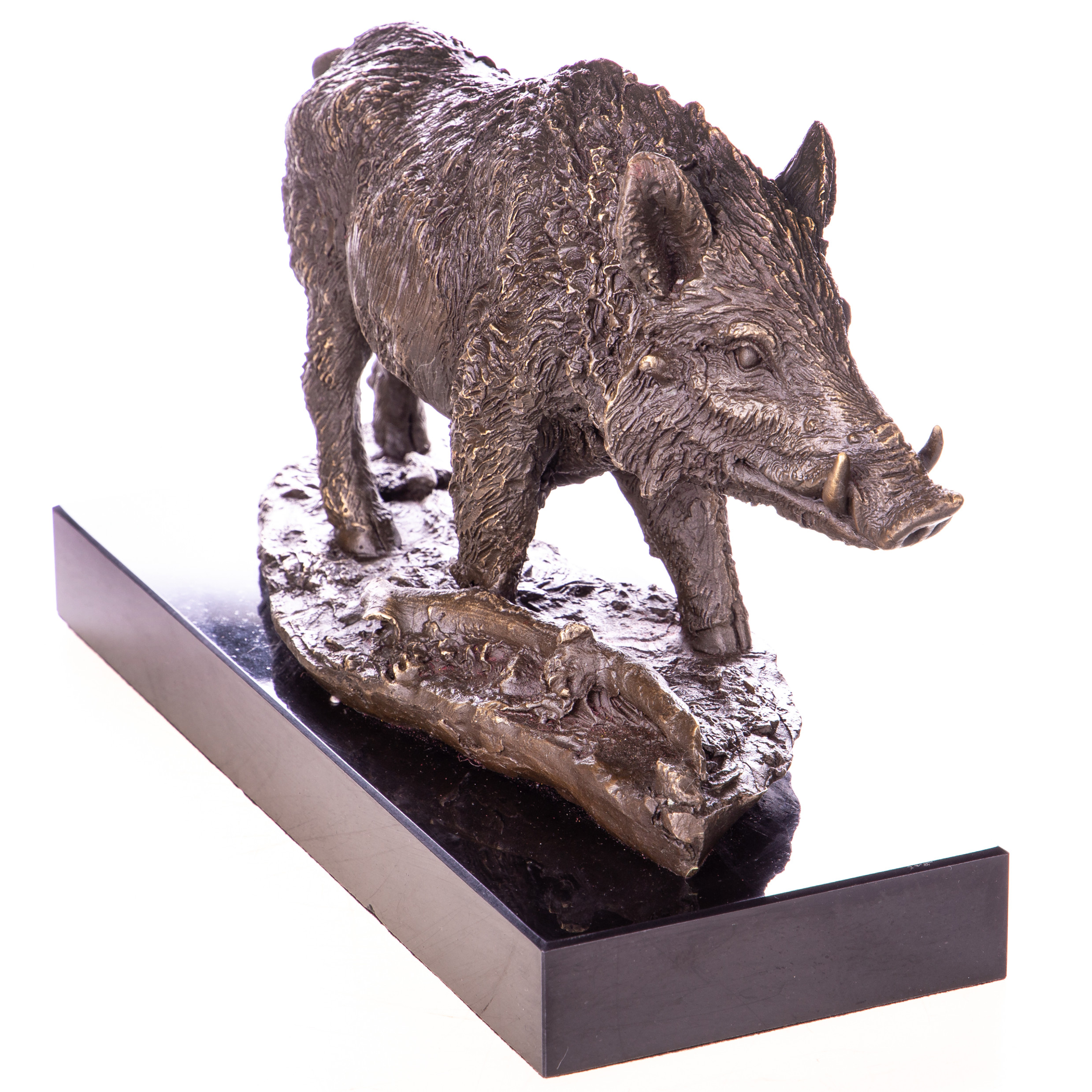 Bronzefigur Wildschwein 19x28x11cm. Bronzefiguren aus verschiedenen Stilrichtungen und in unterschiedlichen Größen warten darauf, Dein häusliches Ambiente zu verzaubern. Eine Bronzefigur wirkt immer stilvoll und künstlerisch. Ob auf dem Schreibtisch oder in Regal und Vitrine, eine Bronzefigur verschönert ihre Umgebung und zieht die Blicke auf sich. Aber nicht nur in Wohnung und Haus, auch draußen, zum Beispiel im Eingangsbereich, im Garten oder am Teich kann sie ihre Wirkung entfalten. Frostsicherheit, lebenslange Haltbarkeit und edle Erscheinung sind ihre Vorteile.