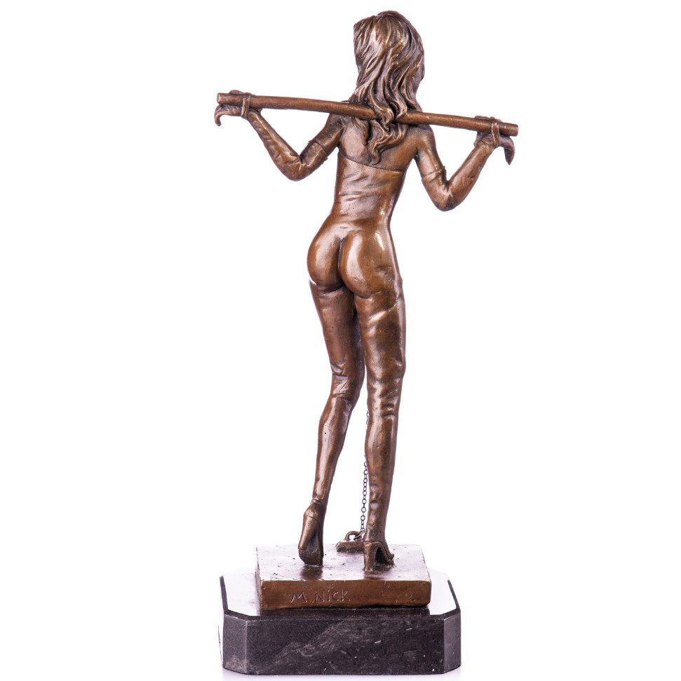 Erotische Bronze Figur „Gefesselte Frau“ 34x16x9cm. Bronzefiguren aus verschiedenen Stilrichtungen und in unterschiedlichen Größen warten darauf, Dein häusliches Ambiente zu verzaubern. Eine Bronzefigur wirkt immer stilvoll und künstlerisch. Ob auf dem Schreibtisch oder in Regal und Vitrine, eine Bronzefigur verschönert ihre Umgebung und zieht die Blicke auf sich. Aber nicht nur in Wohnung und Haus, auch draußen, zum Beispiel im Eingangsbereich, im Garten oder am Teich kann sie ihre Wirkung entfalten. Frostsicherheit, lebenslange Haltbarkeit und edle Erscheinung sind ihre Vorteile.