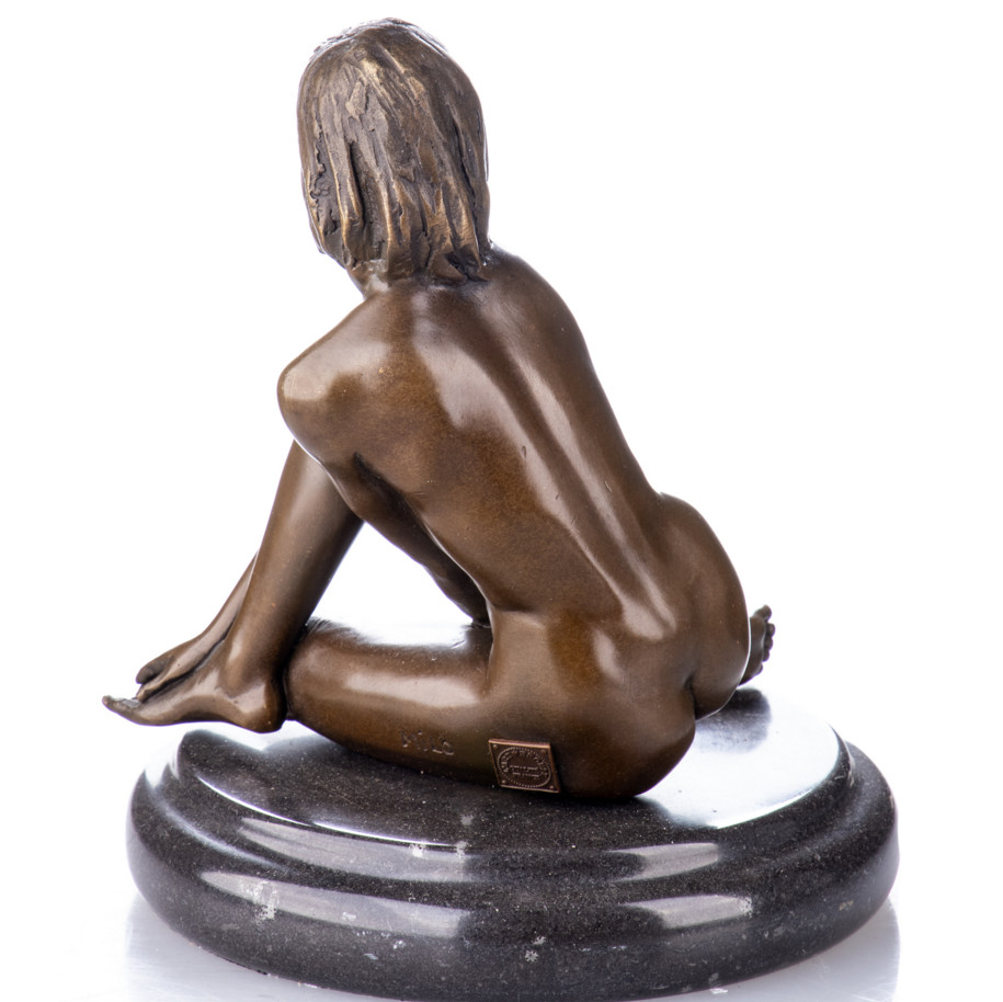 Erotische Bronzefigur Weiblicher Akt 18x15x15cm. Bronzefiguren aus verschiedenen Stilrichtungen und in unterschiedlichen Größen warten darauf, Dein häusliches Ambiente zu verzaubern. Eine Bronzefigur wirkt immer stilvoll und künstlerisch. Ob auf dem Schreibtisch oder in Regal und Vitrine, eine Bronzefigur verschönert ihre Umgebung und zieht die Blicke auf sich. Aber nicht nur in Wohnung und Haus, auch draußen, zum Beispiel im Eingangsbereich, im Garten oder am Teich kann sie ihre Wirkung entfalten. Frostsicherheit, lebenslange Haltbarkeit und edle Erscheinung sind ihre Vorteile.
