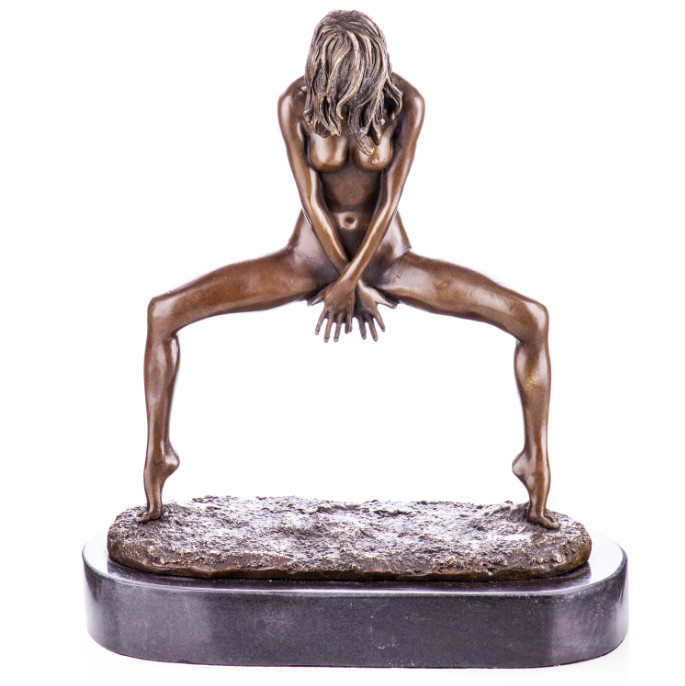 Erotische Bronzefigur Weiblicher Akt 26cm. Bronzefiguren aus verschiedenen Stilrichtungen und in unterschiedlichen Größen warten darauf, Dein häusliches Ambiente zu verzaubern. Eine Bronzefigur wirkt immer stilvoll und künstlerisch. Ob auf dem Schreibtisch oder in Regal und Vitrine, eine Bronzefigur verschönert ihre Umgebung und zieht die Blicke auf sich. Aber nicht nur in Wohnung und Haus, auch draußen, zum Beispiel im Eingangsbereich, im Garten oder am Teich kann sie ihre Wirkung entfalten. Frostsicherheit, lebenslange Haltbarkeit und edle Erscheinung sind ihre Vorteile.