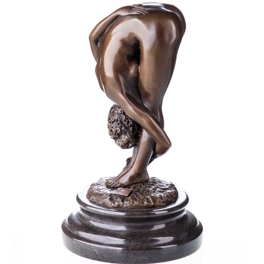 Erotische Bronzefigur „Weiblicher Akt“ 21x12x12cm. Bronzefiguren aus verschiedenen Stilrichtungen und in unterschiedlichen Größen warten darauf, Dein häusliches Ambiente zu verzaubern. Eine Bronzefigur wirkt immer stilvoll und künstlerisch. Ob auf dem Schreibtisch oder in Regal und Vitrine, eine Bronzefigur verschönert ihre Umgebung und zieht die Blicke auf sich. Aber nicht nur in Wohnung und Haus, auch draußen, zum Beispiel im Eingangsbereich, im Garten oder am Teich kann sie ihre Wirkung entfalten. Frostsicherheit, lebenslange Haltbarkeit und edle Erscheinung sind ihre Vorteile.