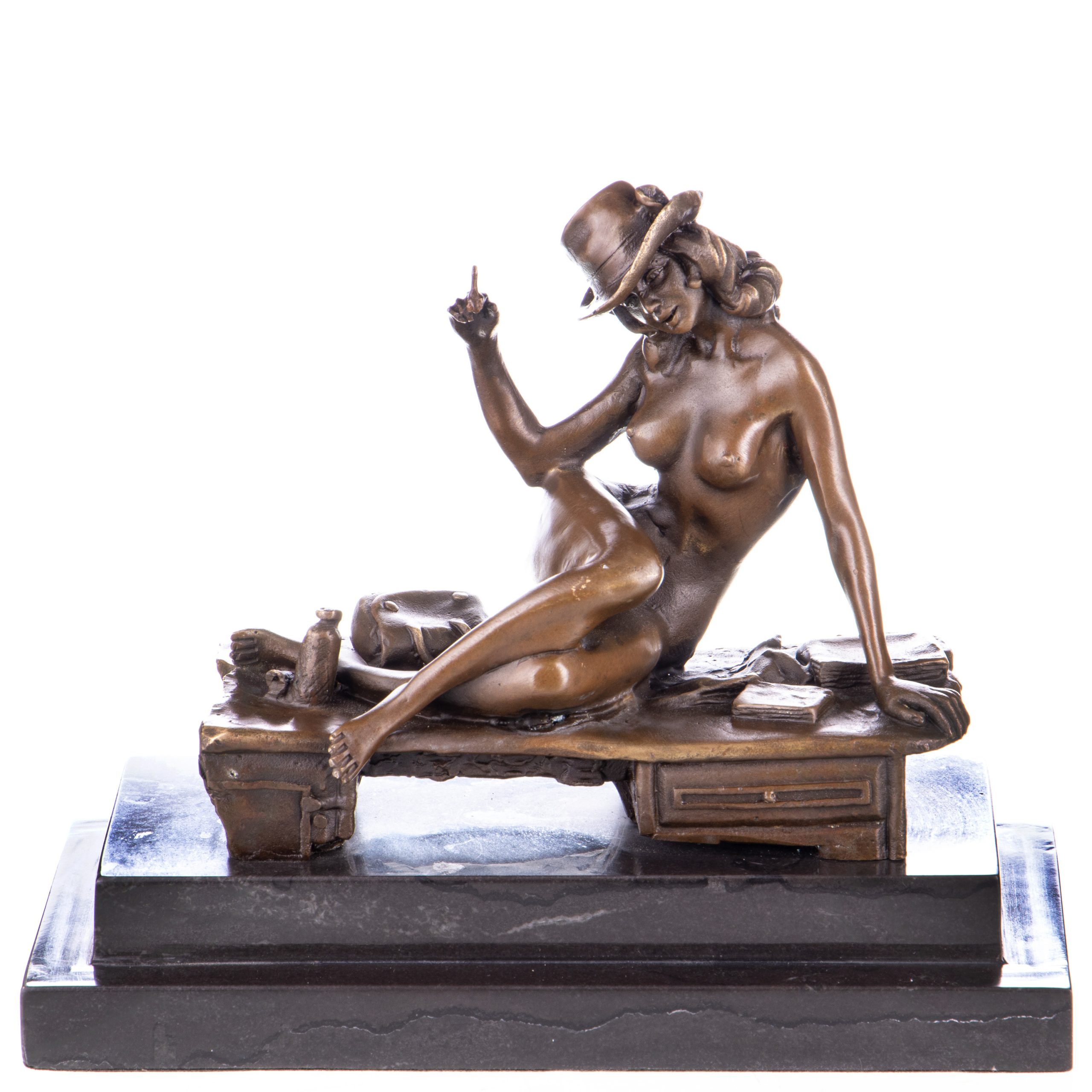 Erotische Bronzefigur „Weiblicher Akt auf Schreibtisch“ 19x23x12cm