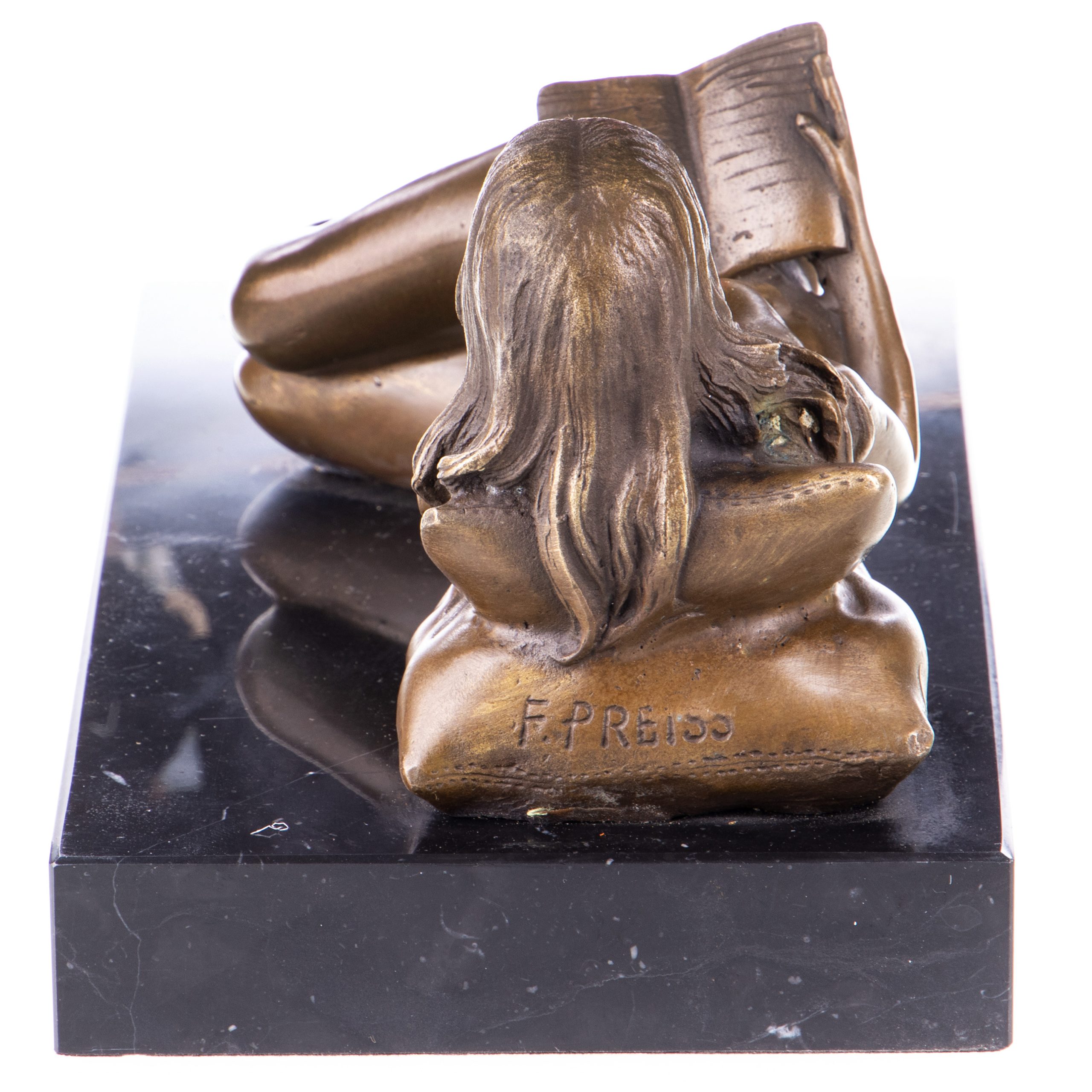 Erotische Bronzefigur „Weiblicher Akt mit Buch“ 12x27x14cm