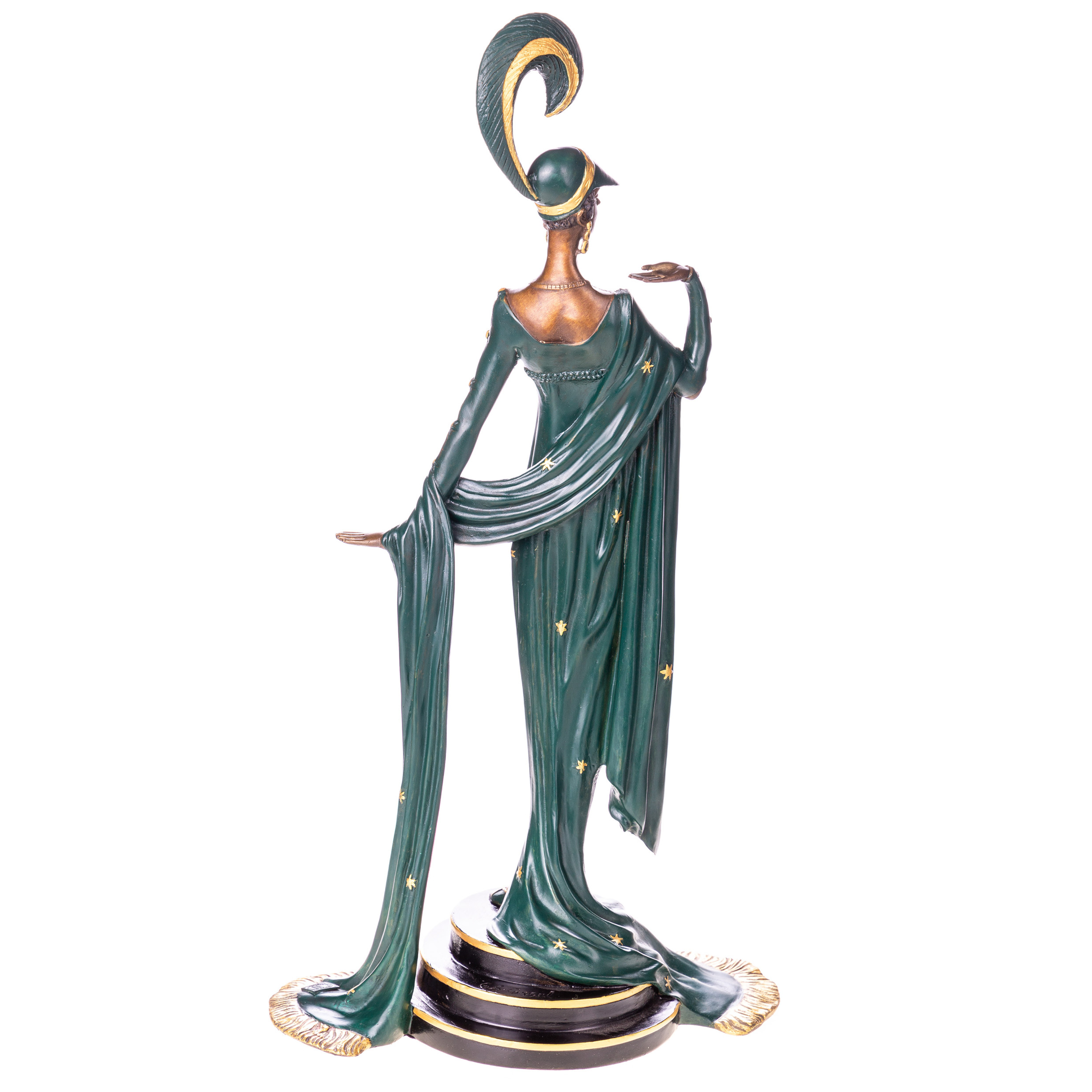 Farbige Art Deco Bronzefigur Frau 44x22x11cm. Bronzefiguren aus verschiedenen Stilrichtungen und in unterschiedlichen Größen warten darauf, Dein häusliches Ambiente zu verzaubern. Eine Bronzefigur wirkt immer stilvoll und künstlerisch. Ob auf dem Schreibtisch oder in Regal und Vitrine, eine Bronzefigur verschönert ihre Umgebung und zieht die Blicke auf sich. Aber nicht nur in Wohnung und Haus, auch draußen, zum Beispiel im Eingangsbereich, im Garten oder am Teich kann sie ihre Wirkung entfalten. Frostsicherheit, lebenslange Haltbarkeit und edle Erscheinung sind ihre Vorteile.