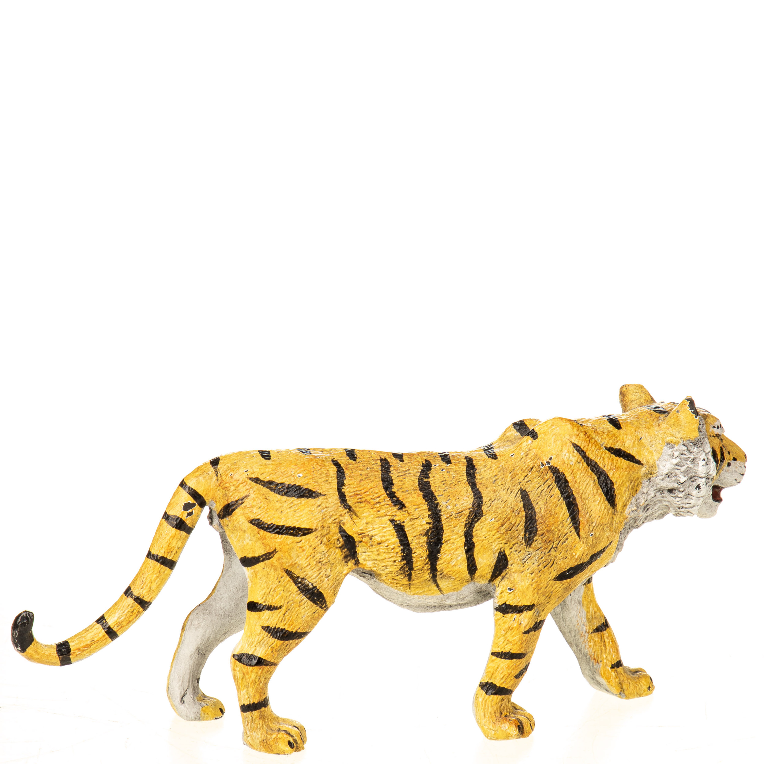 Farbige Bronzefigur Wiener Art Tiger 6x14x4cm. Bronzefiguren aus verschiedenen Stilrichtungen und in unterschiedlichen Größen warten darauf, Dein häusliches Ambiente zu verzaubern. Eine Bronzefigur wirkt immer stilvoll und künstlerisch. Ob auf dem Schreibtisch oder in Regal und Vitrine, eine Bronzefigur verschönert ihre Umgebung und zieht die Blicke auf sich. Aber nicht nur in Wohnung und Haus, auch draußen, zum Beispiel im Eingangsbereich, im Garten oder am Teich kann sie ihre Wirkung entfalten. Frostsicherheit, lebenslange Haltbarkeit und edle Erscheinung sind ihre Vorteile.