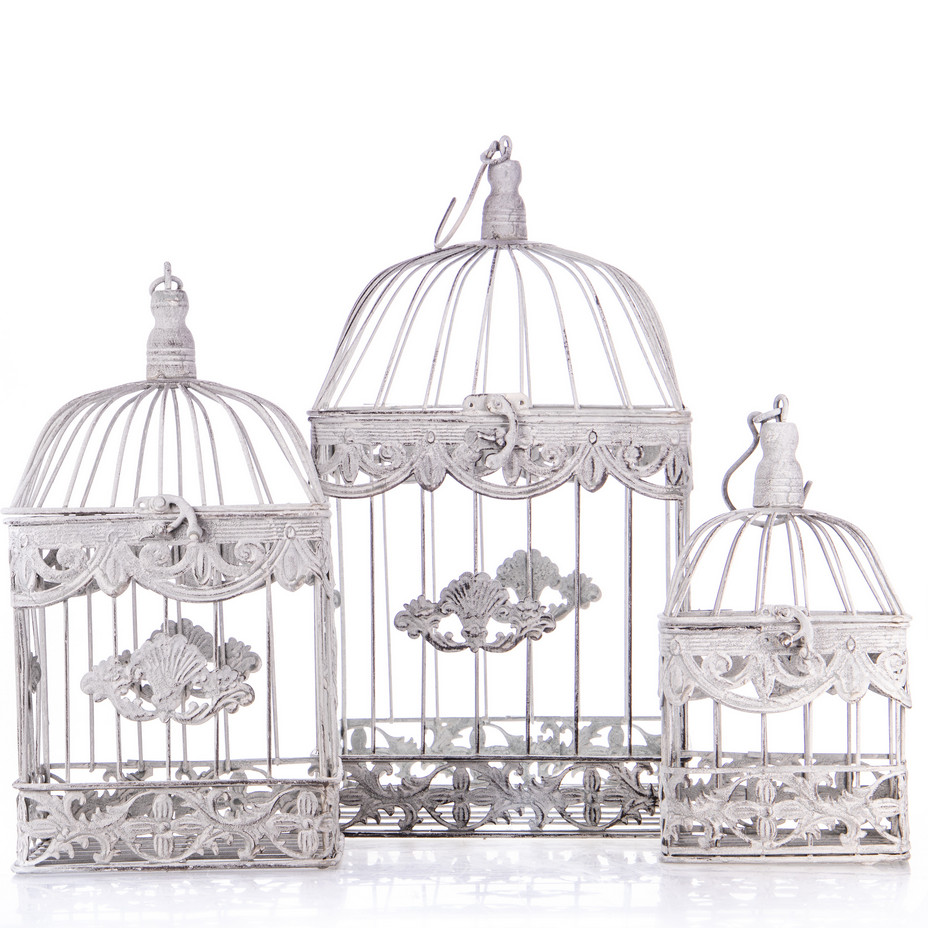 Gartendeko aus Metall – Vogelkäfige 3er Set weiss