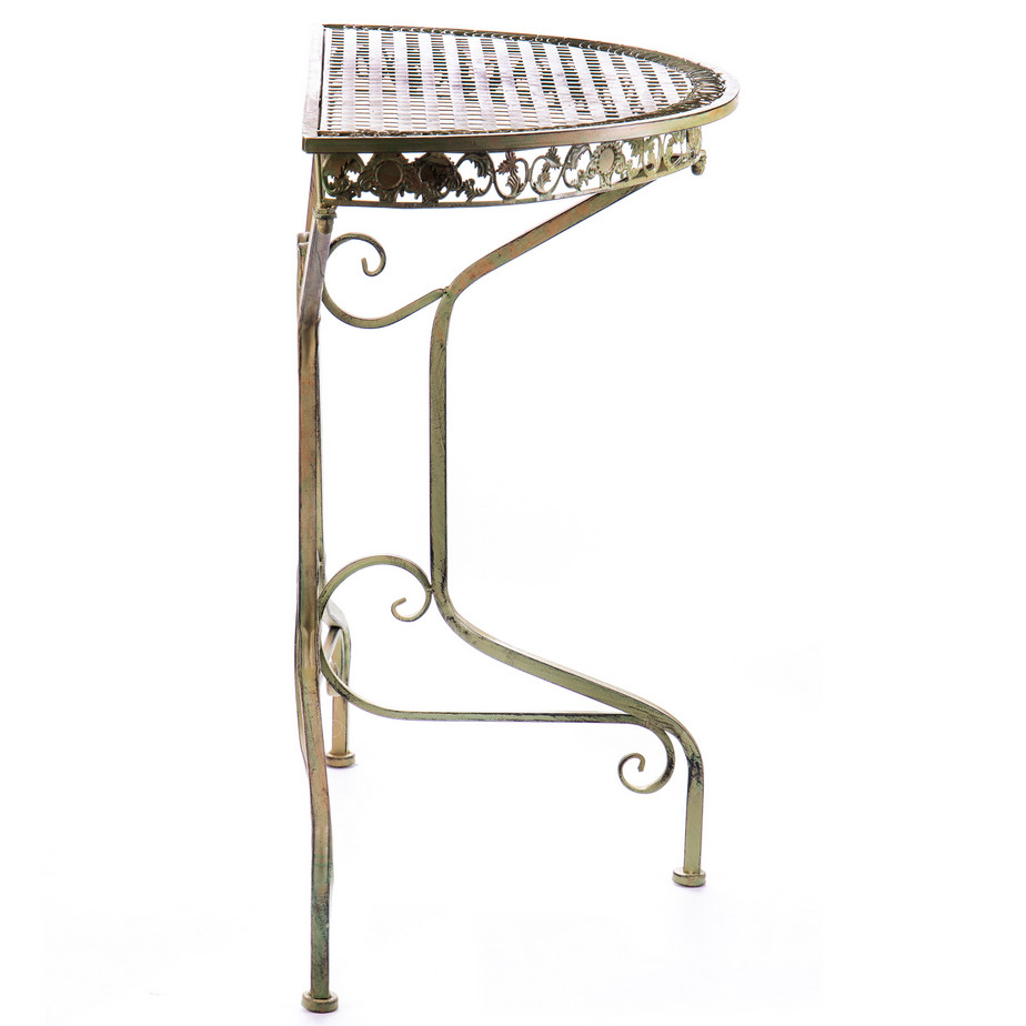 Gartenmöbel aus Metall – Konsolentisch grün 77x78x39cm. Unsere eleganten Möbel und Dekorationen aus Metall bringen eine romantische Atmosphäre in Dein Zuhause und Deinen Garten. Schaffe Dir einen romantischen und verspielten Rückzugsort, an dem Du den hektischen Alltag für einen Augenblick vergessen kannst. Verträumt, leicht und spielerisch ist das Ambiente, in dem Du neue Kraft schöpfen kannst. Laß Dich von uns inspirieren und gestalte Dein kleines Paradies in dem Du das Leben geniessen kannst.