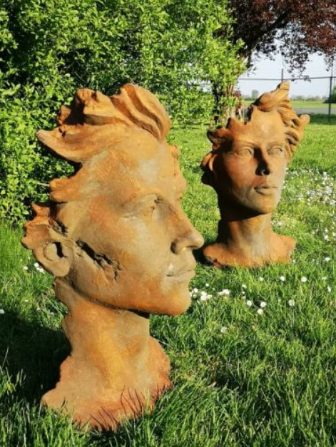 Gesicht „Frau“ (2) Steinguss Edition Oxid mittel. Die Erschaffung von menschlichen Statuen diente schon seit tausenden von Jahren der symbolhaften Repräsentation. Denn das ist der Hauptzweck einer Statue. Kaiser, Könige, kurz die Mächtigen dieser Welt ließen sich auf diese Weise darstellen, um Macht und Größe zu demonstrieren. Statuen der Antike, wie die von griechischen Olympioniken, veranschaulichten darüber hinaus die Schönheit des menschlichen Körpers und die menschliche Kraft und den Willen, den Sieg zu erringen.