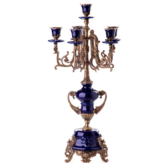 Kerzenleuchter sechsarmig blau 51x25x25cm