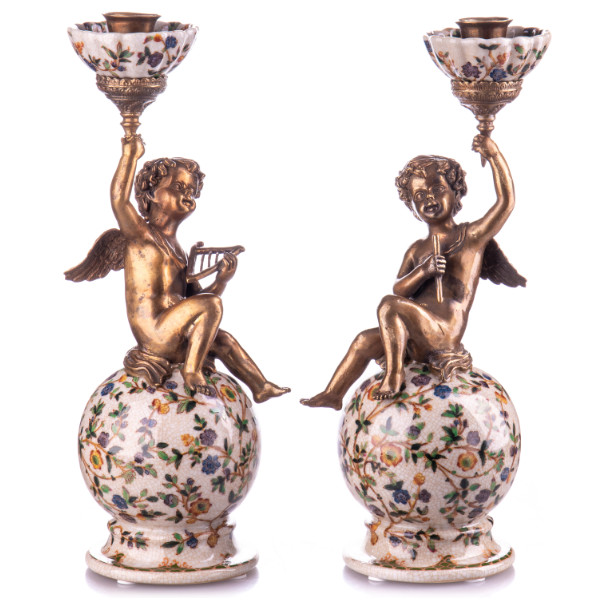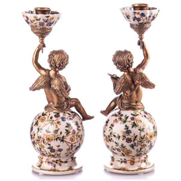 Kerzenständer „Engel auf Kugel mit Blumen“ 2er Set 33x13x12cm. Das Feuer einer Kerze ist die gebändigte Form des Feuers an sich. Die Verwendung von Kerzen war schon in den heidnischen Kulturen der Antike weit verbreitet. Bis heute hat das Licht einer Kerzenflamme nichts von seiner Faszination eingebüßt. Ein altes chinesisches Sprichwort sagt: