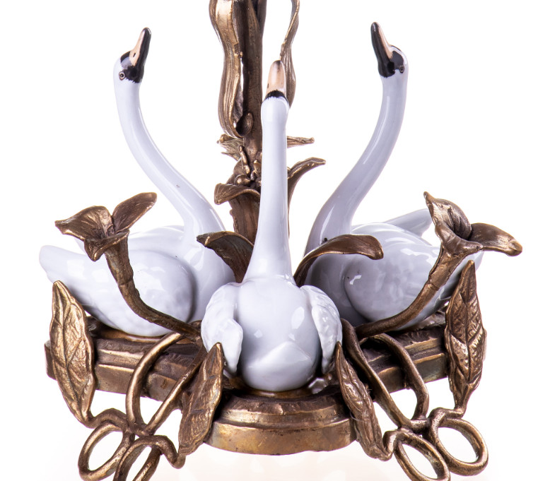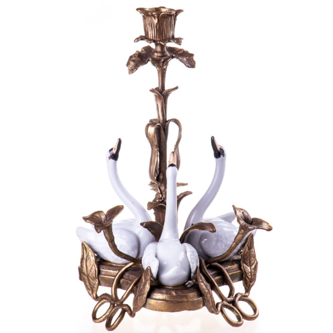 Kerzenständer „Schwäne“ 30x20x20cm. Das Feuer einer Kerze ist die gebändigte Form des Feuers an sich. Die Verwendung von Kerzen war schon in den heidnischen Kulturen der Antike weit verbreitet. Bis heute hat das Licht einer Kerzenflamme nichts von seiner Faszination eingebüßt. Ein altes chinesisches Sprichwort sagt: