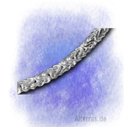 Königskette aus massiven hochwertigen 925 Sterling Silber veredelt mit 100 % Feinsilber. Mit hochglanzpolierten teils bewegliche Kettengliedern, Schmuckkarabiner mit massiven Endkappen und 925 Stempel. Die flach gedrückte ovale Kette (Höhe 2,3mm ) gleicht sich mit den teils beweglichen Kettengliedern und den gerundeten Kanten den Bewegungen an. Wirkt sehr elegant und unbeschreiblich feminin und ist nicht nur zur Abendgarderobe ein echter Hingucker. 925 Sterlingsilber mit 100% Feinsilber veredelt. Made in Germany. Das Rohmaterial wird von deutschen Edelmetall Scheideanstalten bezogen und laufend geprüft. Hinweis: Durch technische und teilweise handarbeitliche Verarbeitung kann das Gewicht der Kette um 5% variieren.