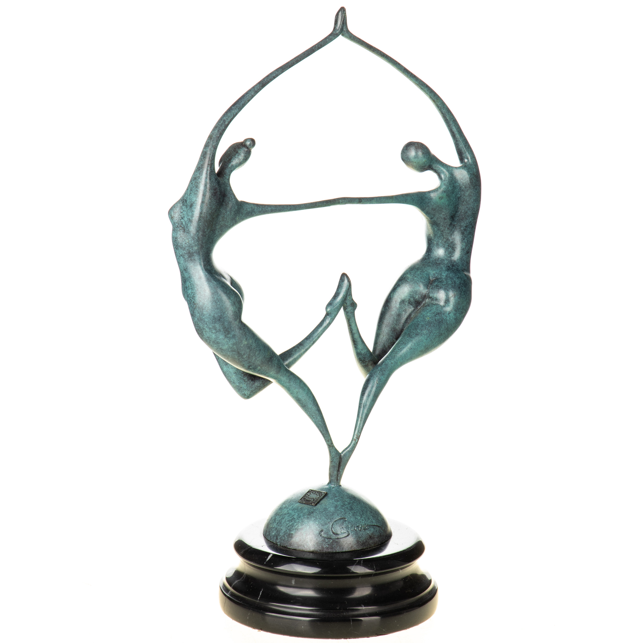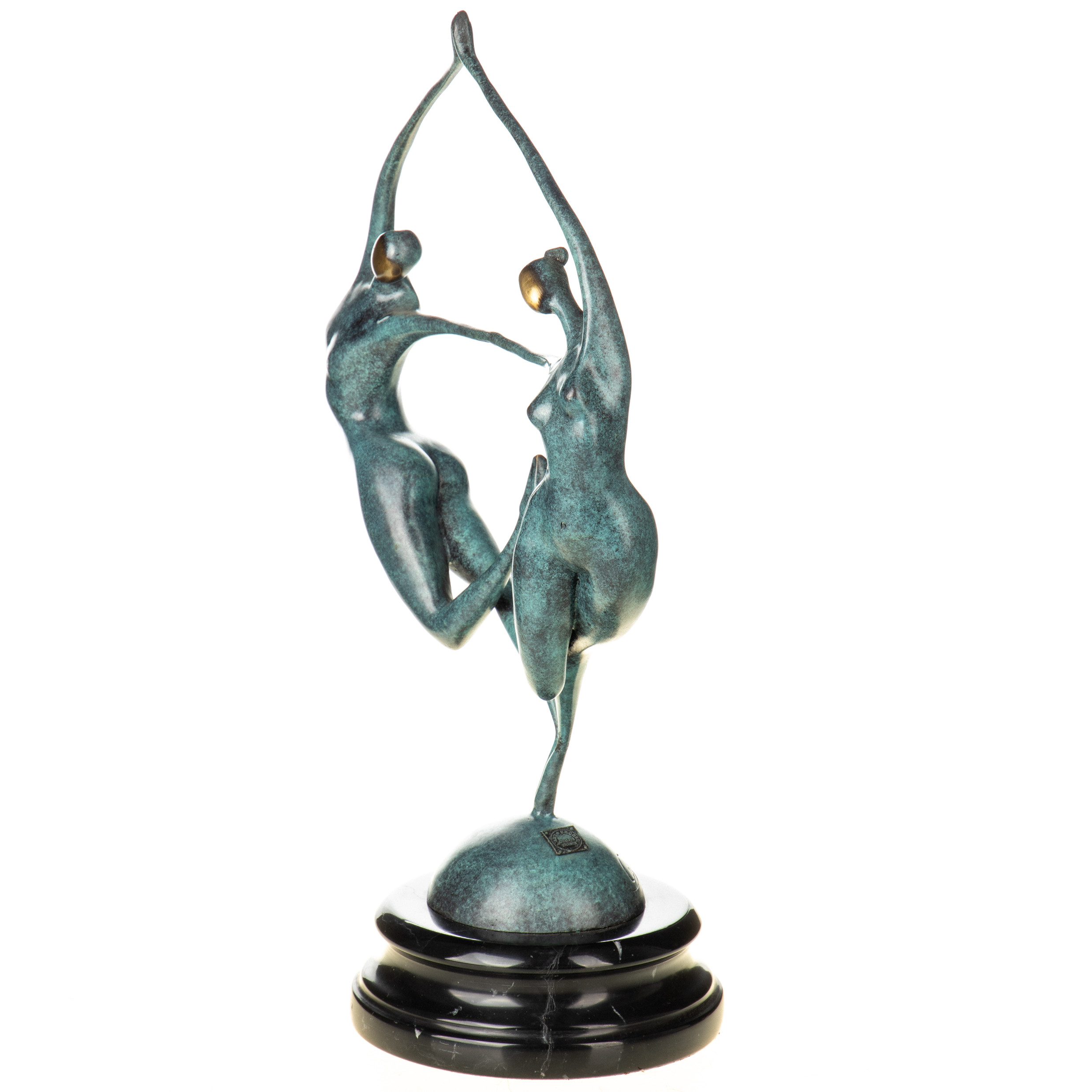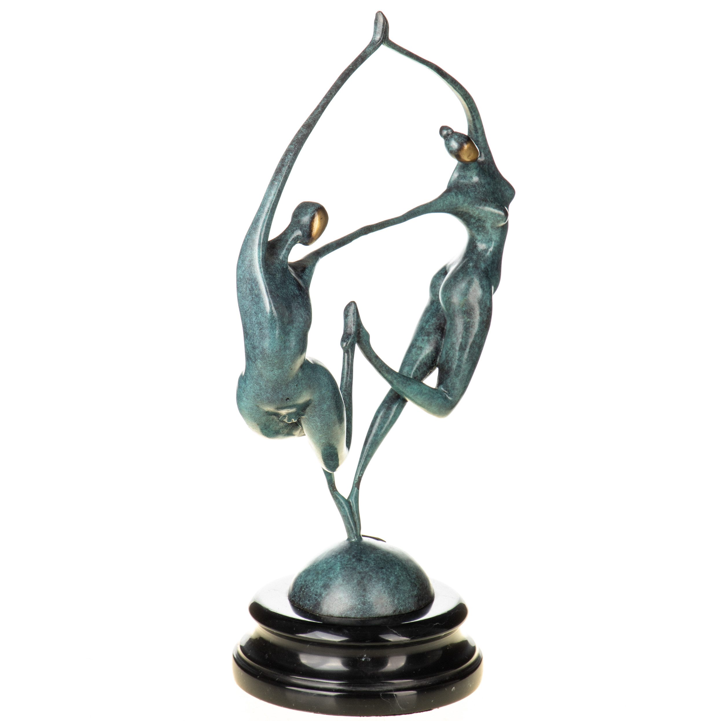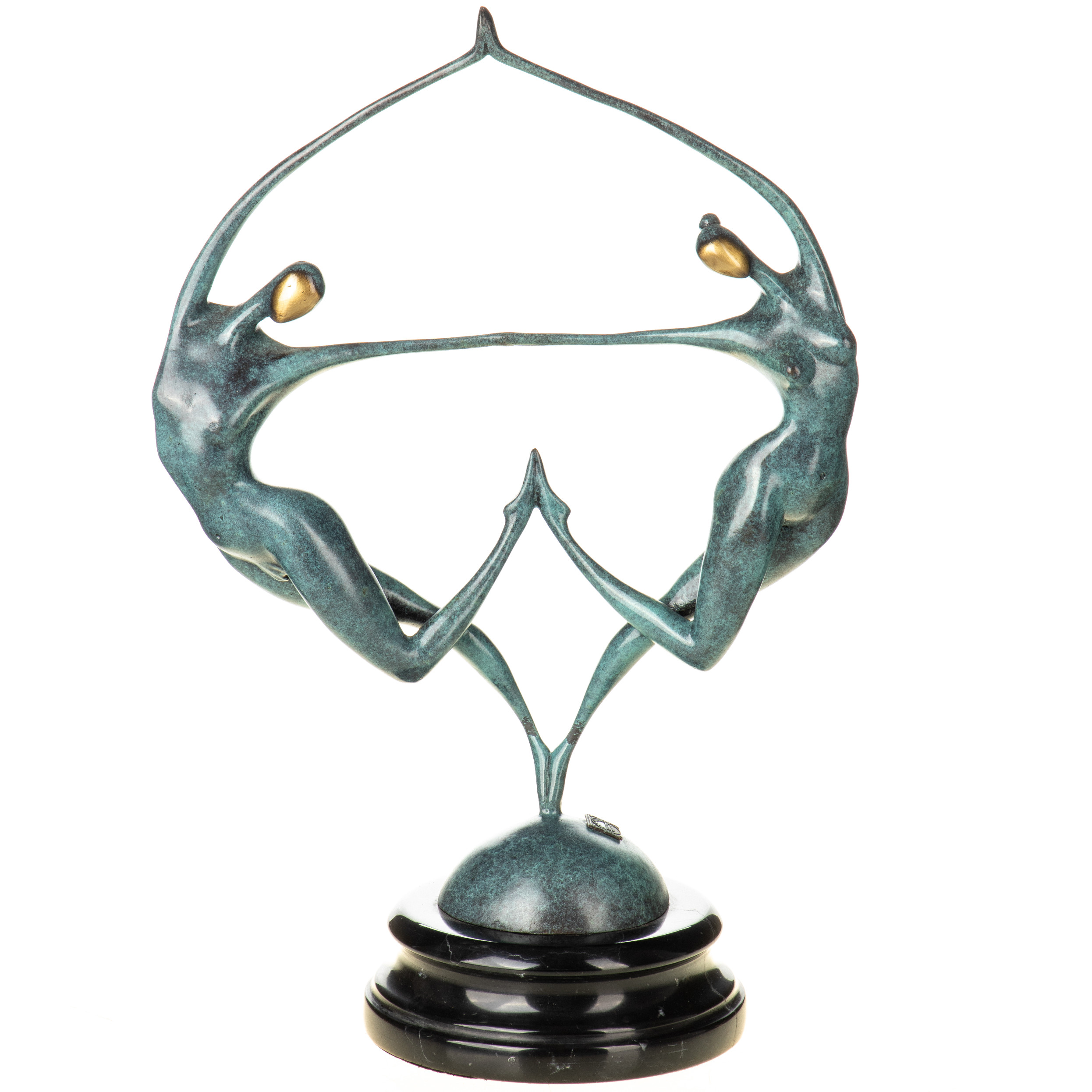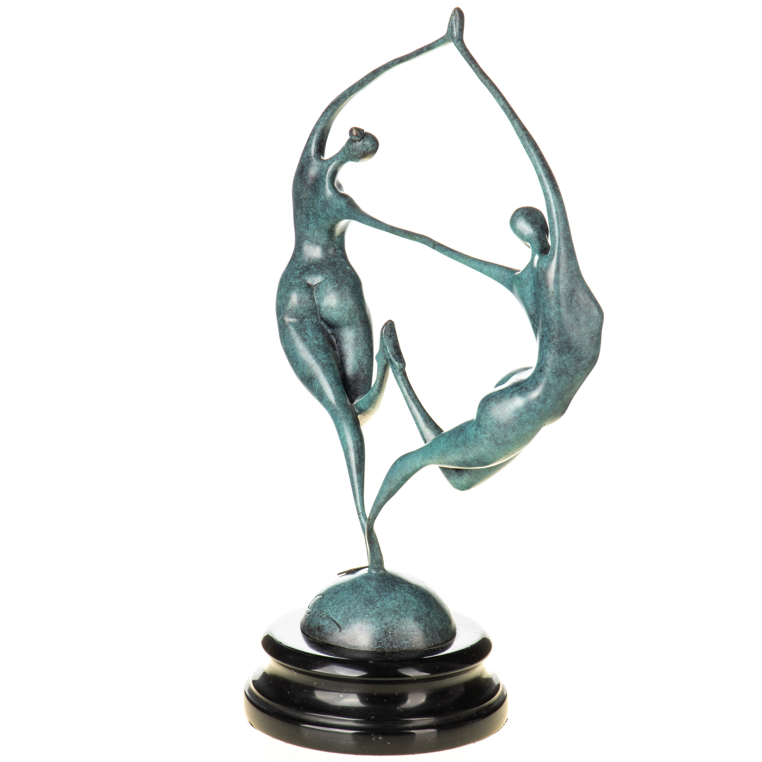 Moderne Bronzefigur tanzendes Paar mit grüner Patina 34x22x12cm