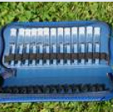 Monoatomare Elemente Testsatz-Etui mit den 20 Mono-Elementen. Testsatz im blauen Lederetui mit allen bisherigen 20 technologisch hergestellten Mono-Elementen in 2ml-Glasröhrchen (das alchemische Manna ist nicht enthalten).