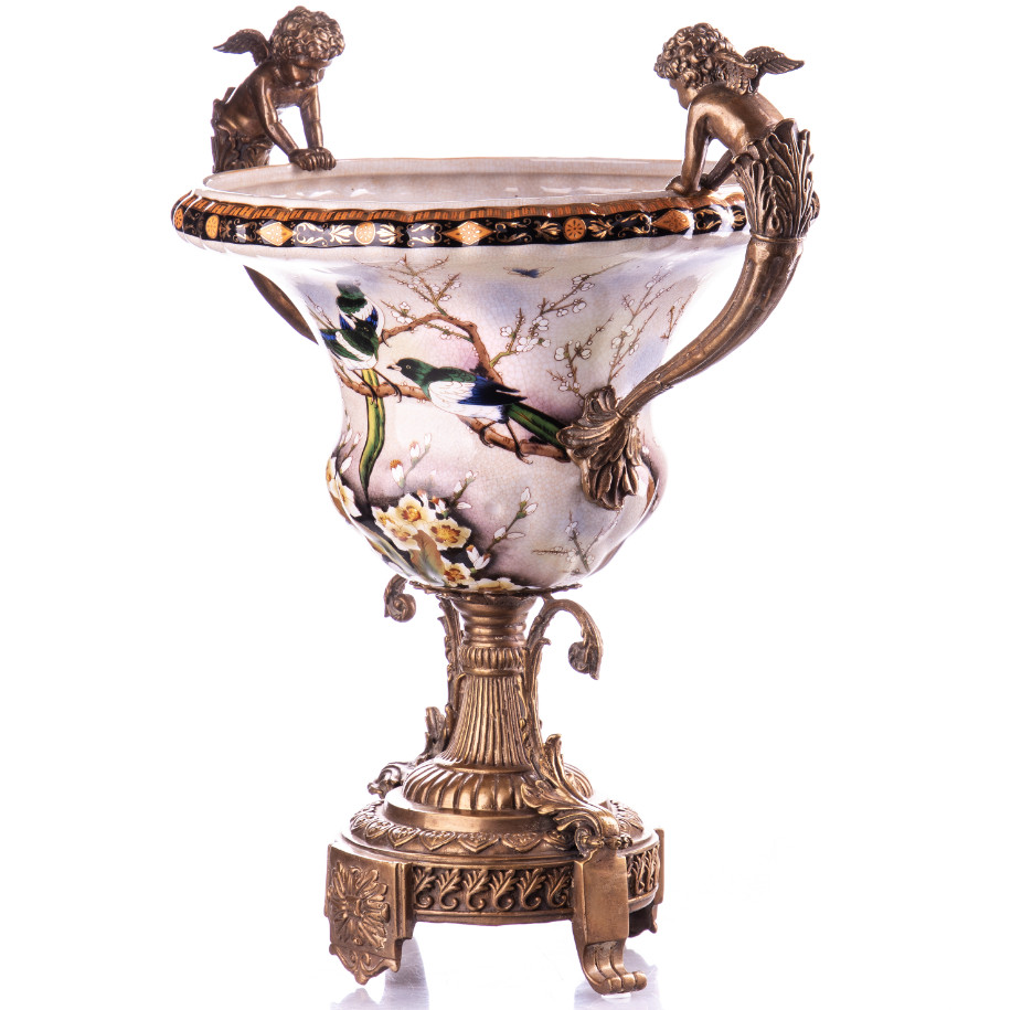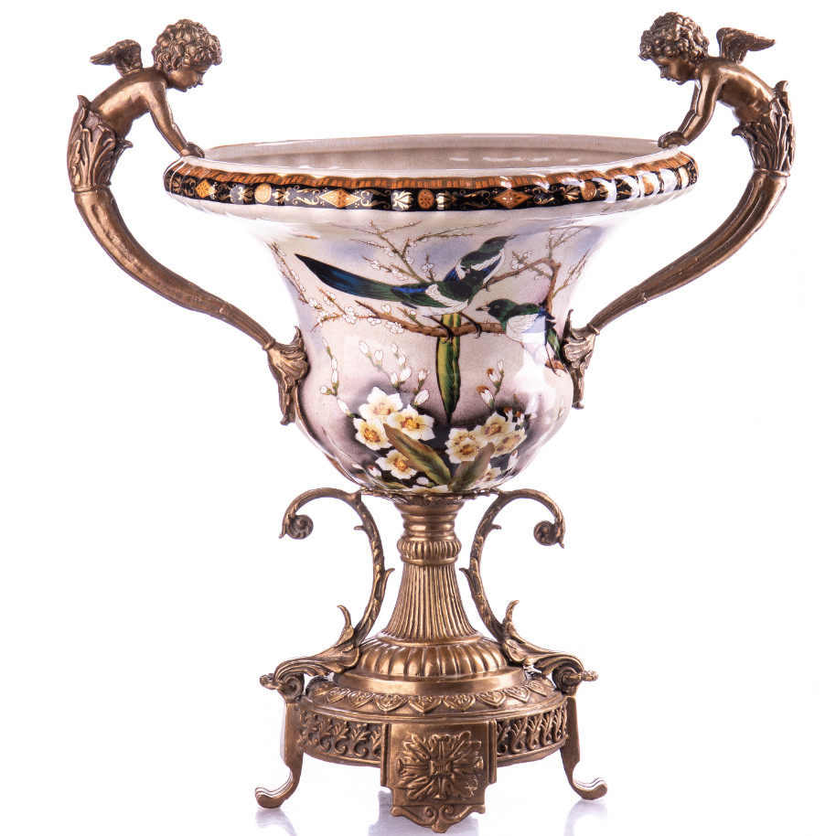 Prunkschale Jardinière „Engel und Vogel“ 40x40x28cm