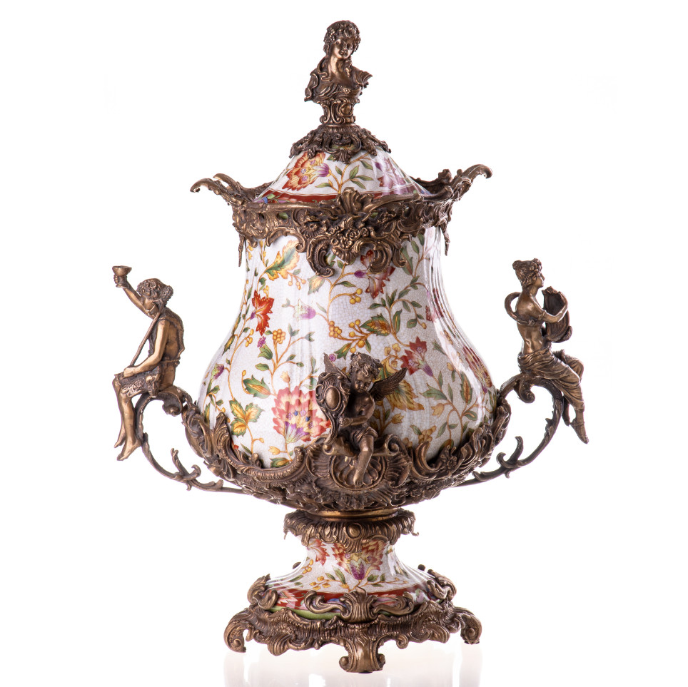 Prunkvase Deckelvase „Jungfrauen und Engel“ (4) 55x42x32cm. Prunkvasen und edle Karaffen verleihen einem Raum königliches Flair. Effektvoller kann man Blumen nicht präsentieren.