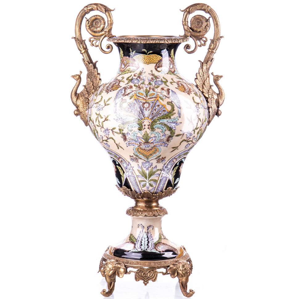 Prunkvase mit Pfauen 54x30x24cm. Prunkvasen und edle Karaffen verleihen einem Raum königliches Flair. Effektvoller kann man Blumen nicht präsentieren.