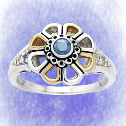 Sehr fein gearbeiteter Ring mit geschliffenen blauen Topas mittig und kleine Steine aus Zirkonia seitlich. Teilvergoldet aus 925-Sterling Silber. Der Edelstein Topas besitzt eine sehr hohe Lichtbrechung und wird oft als Diamanten Imitation verwendet. Maße: Höhe mit Topas 7mm, ø 13mm
