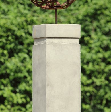 Sockel Moderne Romantik Steinguss mit Bohrung. Oft ist es schwierig, eine Figur, einen geliebten Gegenstand oder einfach nur eine Pflanze im Garten zu präsentieren. Sockel, Säulen und Konsolen können hier helfen, das Objekt ins richtige Licht zu setzen. Für jede Größe findest Du hier den passenden Sockel oder die passende Konsole. Finde heraus, was Dir gefällt. Steht der Gegenstand oder die Figur auf einem Sockel, kann er oder sie Deinen ganzen Garten überwachen oder mit seiner Ausstrahlung verschönern.