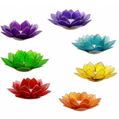 Farbe: Set mit 7 großen Lotus-Kerzenhaltern, in 7 Chakra-Farben