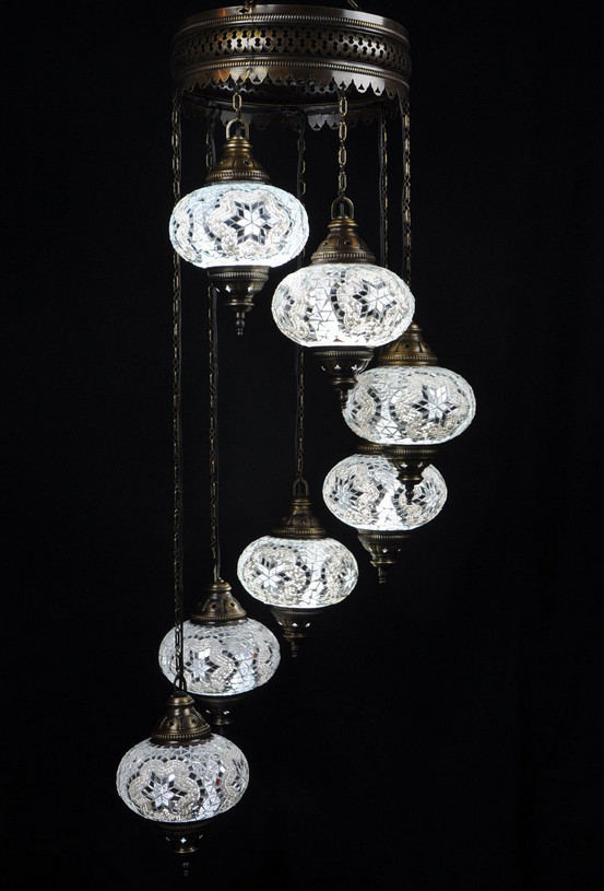 Türkischer Kronleuchter Weiß 7 Kugeln 135x45cm