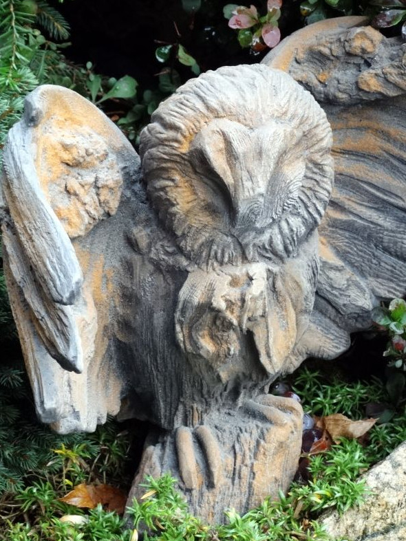 Wesen der Lüfte „Kleine Eule“ Steinguss Rosteffekt 28x31x27cm