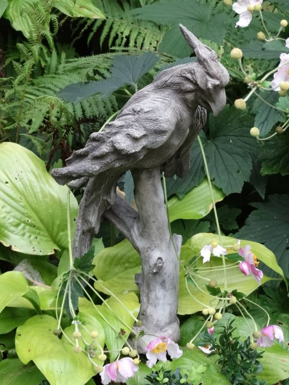 Wesen der Lüfte „Papagei“ dunkler Steinguss 46x20x34cm
