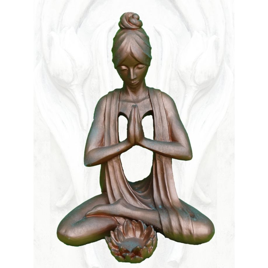 Yoga Spirit „Manipur – Solarplexuschakra“ Steinguss Kupfereffekt 61x50x31cm. Yoga ist ein mögliches Mittel, von der Hektik des Alltags zu entspannen und wieder mehr zu sich selbst zu finden. Durch bestimmte Übungen wie Asanas, Meditation, Körperhaltung und Atemtechnik, ermöglicht diese schon über Jahrtausende bewährte Methode bei regelmäßiger Übung eine Wiederherstellung der Leistungsfähigkeit.
