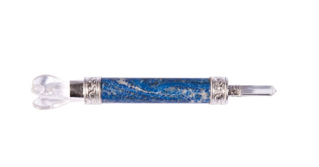 Zauber – „Zauberstab Engel Lapislazuli/Bergkristall“. Der Magierstab oder Zauberstab ist ein Hilfsmittel oder magisches Arbeitsgerät, um Zauber und Magie zu wirken. Im Okkultismus, in Fantasygeschichten oder Märchen taucht er immer wieder auf und ist ein unverzichtbarer Gegenstand für Hexen, Zauberer und Magier in der Zauberwelt wie auch in der Wirklichkeit. Anvisieren eines Ziels, Bündelung von magischer Energie und Unterstützung von Zaubersprüchen sind seine Aufgaben. Hierbei wird er in oftmals symbolische Bewegungsabläufe integriert. Durch die einfache Berührung mit dem Stab kann schon der magische Effekt eintreten.